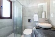 This villa is in a mostly flat area. To access the villa there is a 135cm wide path with just 1 step. The front door has a width of 85cm. The door to the terrace is 125cm wide. The pool terrace is flat and paved, with a lawn area and a wooden path down the garden to the sea. There are 4 roman steps into the pool. The lounge/dining/kitchen area is open plan. There are 2 bedrooms on the ground floor, the doors to the bedrooms are 71cm wide and the doors to the ensuites are 68cm wide. There are 18 steps to the first floor, the widest first floor bedroom door is 71cm wide, and the door to the ensuite is 68cm wide, this ensuite contains a bath and a shower.*Please note that although every effort has been made to ensure the information provided is accurate, errors can occur and if you need to find out more specific information about the villa, please do not hesitate to contact us.
