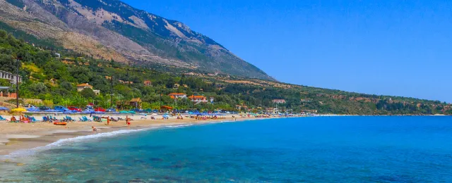 A medium sized quiet family resort on the south coast between Argostoli and Skala, the Bay of Lourdas boasts a long glorious sandy beach, along with some some pebbly sections and a calming crystal clear blue sea.