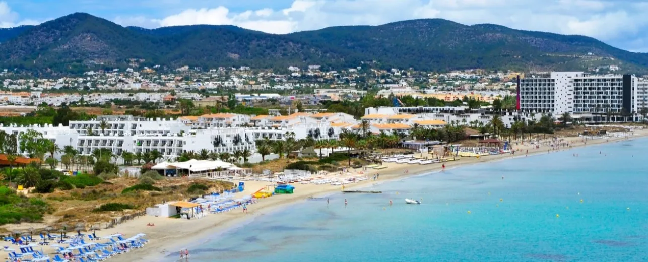 Playa d’en Bossa is one of Ibiza’s most loved beach resorts, where long golden sands, turquoise shallows, and a carefree island atmosphere come together beautifully. Days drift by with lazy beach walks, chilled music floating from stylish bars, and plenty of cosy spots to enjoy a long lunch in the sun. As evening arrives, the resort’s upbeat energy adds a fun sparkle without ever feeling overwhelming.