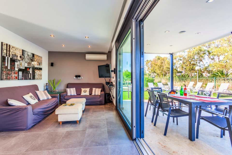 To access the villa there is a path which is 85cm wide alongside 1 step. The front door has a width of 93cm, whilst the door to the terrace is 250cm wide. The terrace is open-plan, flat and tiled. There are 2 steps down to the poolside. The terrace also features artificial lawn. The pool itself has step access. The ground floor bedroom and shower room have a door width of 70cm. The lounge and kitchen are open plan. *Please note that although every effort has been made to ensure the information provided is accurate, errors can occur and if you need to find out more specific information about the villa, please do not hesitate to contact us.